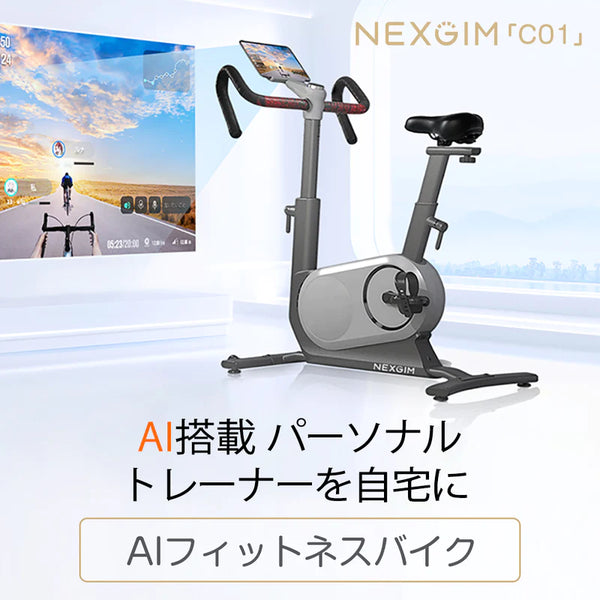Nexgim MG-X05 AI 折り畳み式フィットネスバイク 【特徴】 ・簡単に畳めて、コンパクト収納。 ・AI分析支援機能搭載。パーソナルトレーナーがいるような感覚でトレーニングできる。 ・スピードセンサーによるパワー測定システムによって正確なカロリー計算を実現。 ・FTPテスト機能搭載。AIがオーダーメイドでトレーニングメニュー作成。 ・マグネット式負荷調節システム搭載。超静音仕様。