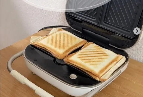 solemood のマルチホットサンドメーカー見た目も可愛いし使い方もシンプルめちゃくちゃ良かったタイマー回してほっとくだけやしその間にコーヒー淹れたりしてたらあっという間だいたい6〜8分くらいで2枚焼けたよ