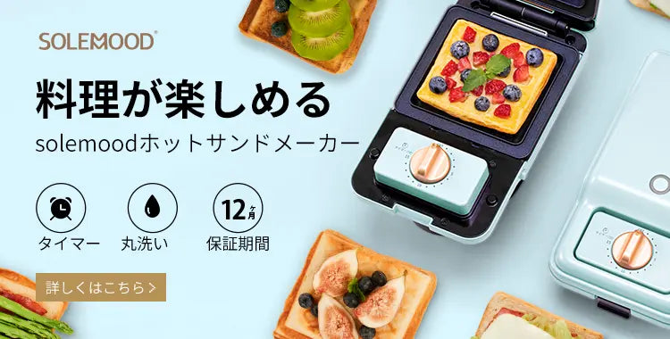 マルチサンドメーカー 2枚 ワッフルメーカー タイマー付き SOLEMOOD