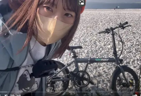 折りたたみ電動アシスト自転車 ERWAY A01 5段階モード・7段変速ギア、どこにでも楽に走行 小さい石がゴロゴロしている道も余裕だった電池が切れてしまったても普通の自転車として使えますコンパクトで折りたたみできて持ち運びも便利です