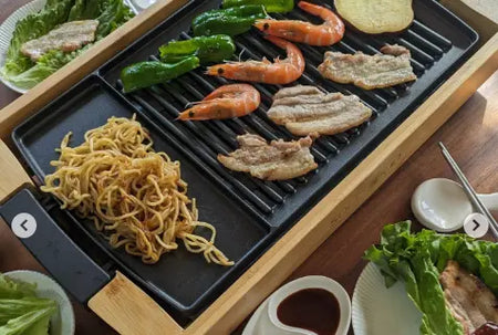 今日は久しぶりに焼肉。おうちで焼肉すると、煙がスゴくってせっかく年末の掃除が台無し。でもsolemood 焼肉プレート減煙ならおうちの中がクリーンなんだょ。このプレート、最高230°Cで、温度5段階調節できる。しかも、天然の竹の木目のスタンドで高級感もあって、我が家の一枚板ダイニングに合わせてもコーディネートできるし、高級焼肉屋さんみたいな雰囲気だから気分あがって、モリモリ食べれちゃう。焼きそばに最適平面プレートもあるし、焼き肉に最適な波型プレートで料理の幅が広がるのも嬉しいポイント!次回はここで平面でビビンバ、波面で焼き鳥なども楽しみたいな。食後の後片付け面倒だけど実はこれ、コントローラーを外せばプレート簡に丸々水洗い可能。平底プレートも焦げ付いてないから掃除も楽々